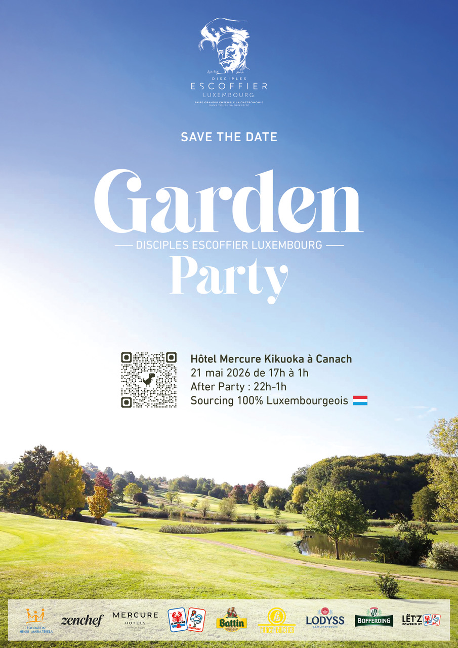 Les Disciples d’Escoffier Luxembourg ont le plaisir de vous annoncer leur prochain événement : une Garden Party exceptionnelle, pensée comme un moment de rencontre, de partage et de valorisation de la gastronomie luxembourgeoise.